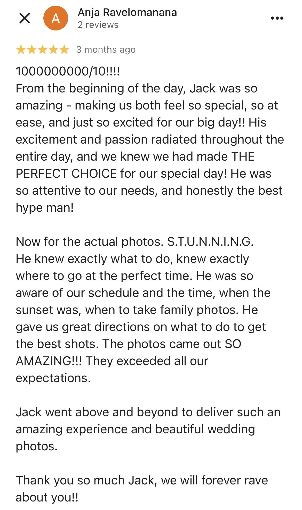 As a wedding photographer, I take pride in my reliability, positive energy, and adaptability to handle any surprises your special day may bring. You can count on me every step of the way, making the wedding planning process as stress-free as possible.